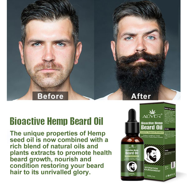 Hydrat Hóa Sâu: Hoạt động như một chất làm mềm và dầu xả, Aliver Bioactive Hemp Beard Oil cung cấp độ ẩm sâu, làm mềm mại và dễ quản lý bộ râu.
